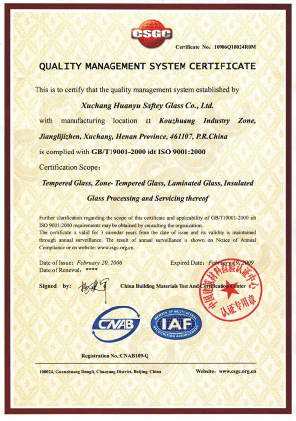 2004年,許昌環(huán)宇安全玻璃有限責(zé)任公司正式成立
